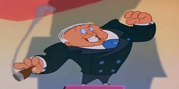 L.B. Mammoth is a minor character from the film. He is a short, old man who smokes cigars and is the head of Mammoth Studios. He believes that Darla Dimple is the secret of his success, unaware that she is a wicked girl. Usually, when he arrives, those applauding and cheering have to stop. The exception is during a premiere, where he encourages the crowd to go on. It is unknown what the initials stand for. He was voiced by the late George Kennedy.